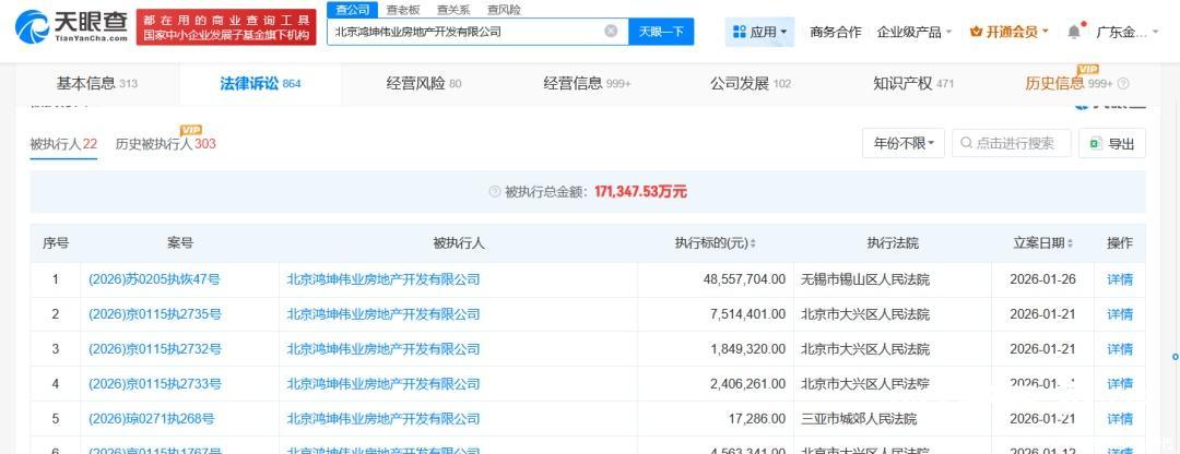 鸿坤广场所涉企业被列为失信被执行人
