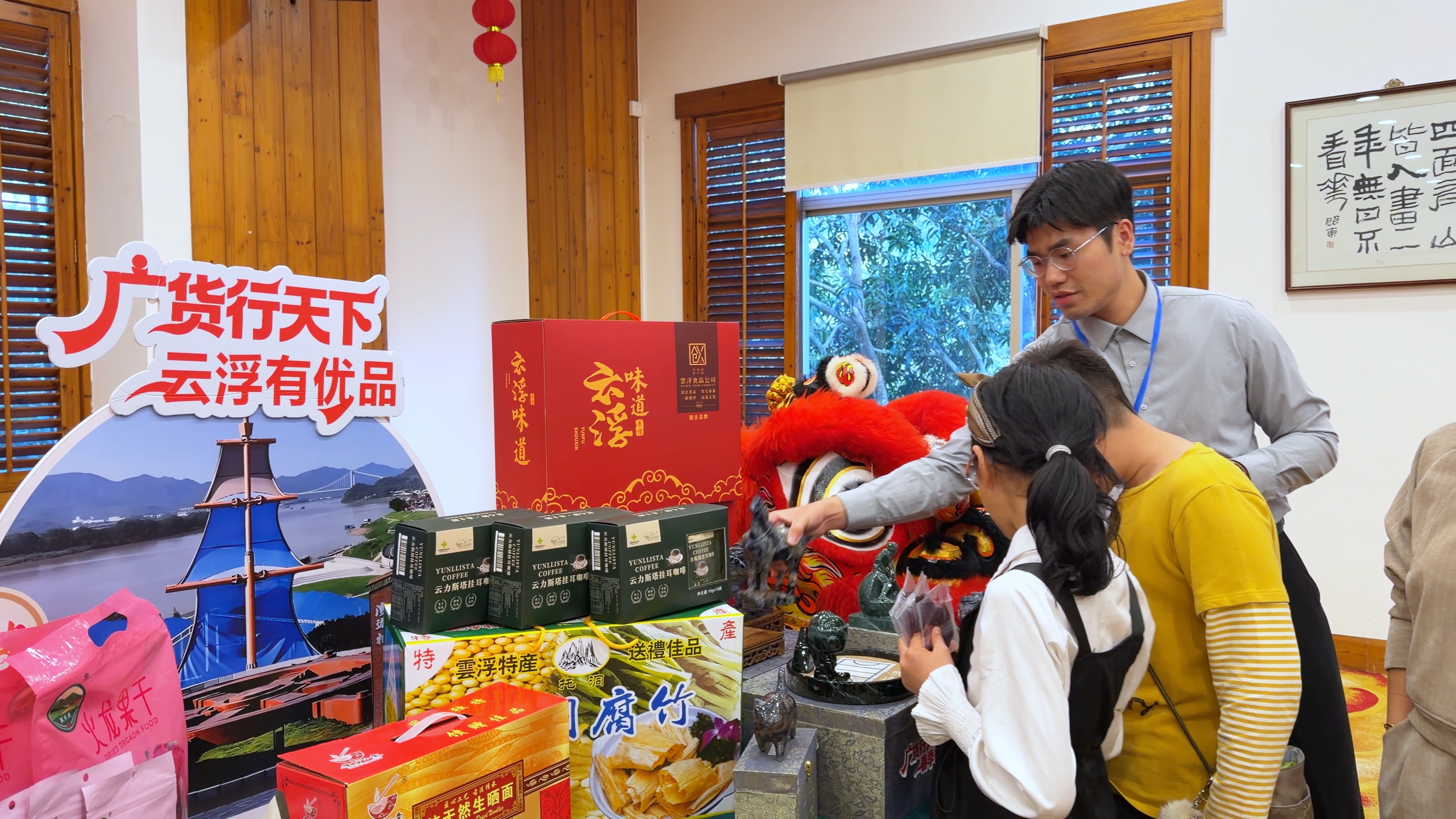下午18时的欢迎晚宴上,罗定鱼腐、广式盘菜、老火靓汤、黄皮鸭、粉葛蒸腊味、擂茶粥……一道道云浮味十足的粤菜得到客人们一致好评,大家围坐品尝美食,畅聊情谊。而大厅里摆放的云浮土特产:罗定鱼腐、托洞腐竹、无核黄皮系列产品、新兴凉果、银丝米粉、肉桂米粉引来更多关注,大家纷纷上前品尝。