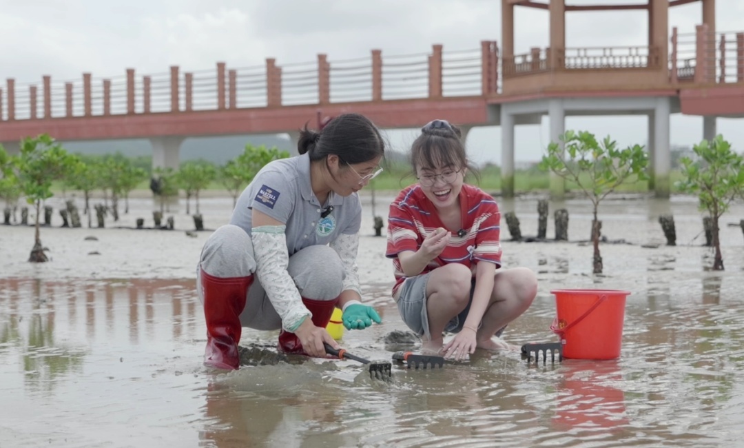 “在马尾岛赶海,偶遇老乡教我摸贝壳。”