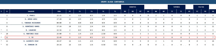 西乙常规赛第一场,余嘉豪所在的Alega Cantabria队72-96惨败CB Zamora,余嘉豪吞下了常规赛的首败,但他个人的表现真的挺不错,3中1,罚球10中7,拿到9分3篮板1助攻,而且余嘉豪是绝对的主力。